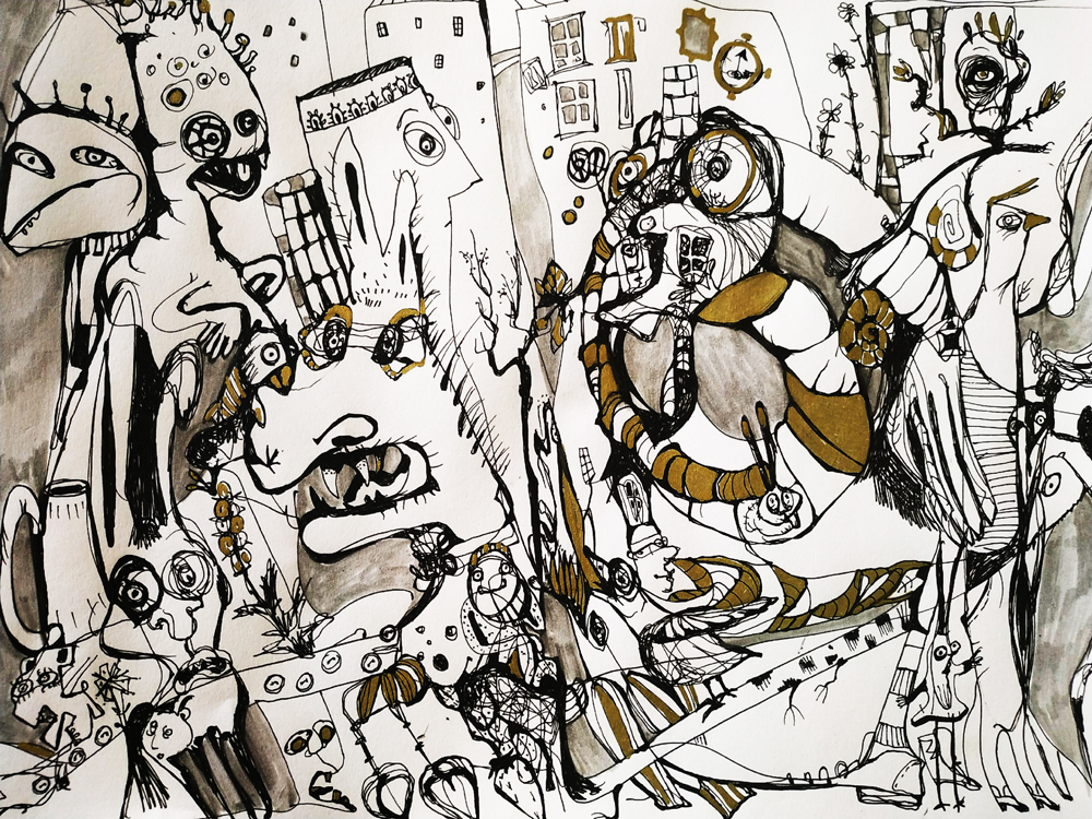 2019-2020. Graafika. Värviline paber, viltpliiatsid.