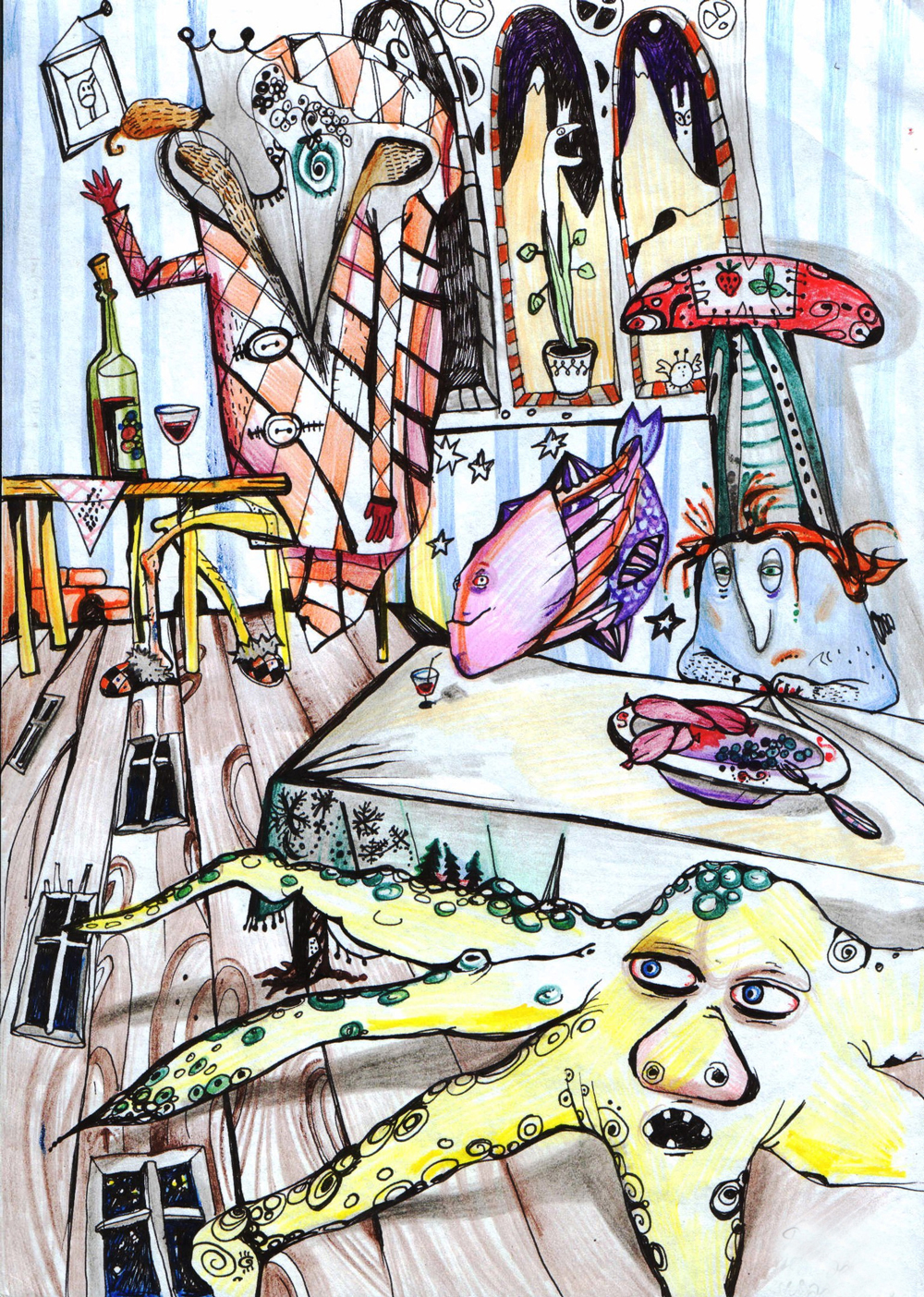 2019-2020. Graafika. Värviline paber, viltpliiatsid.